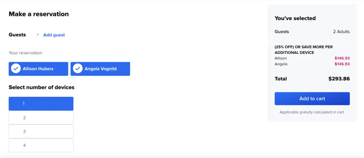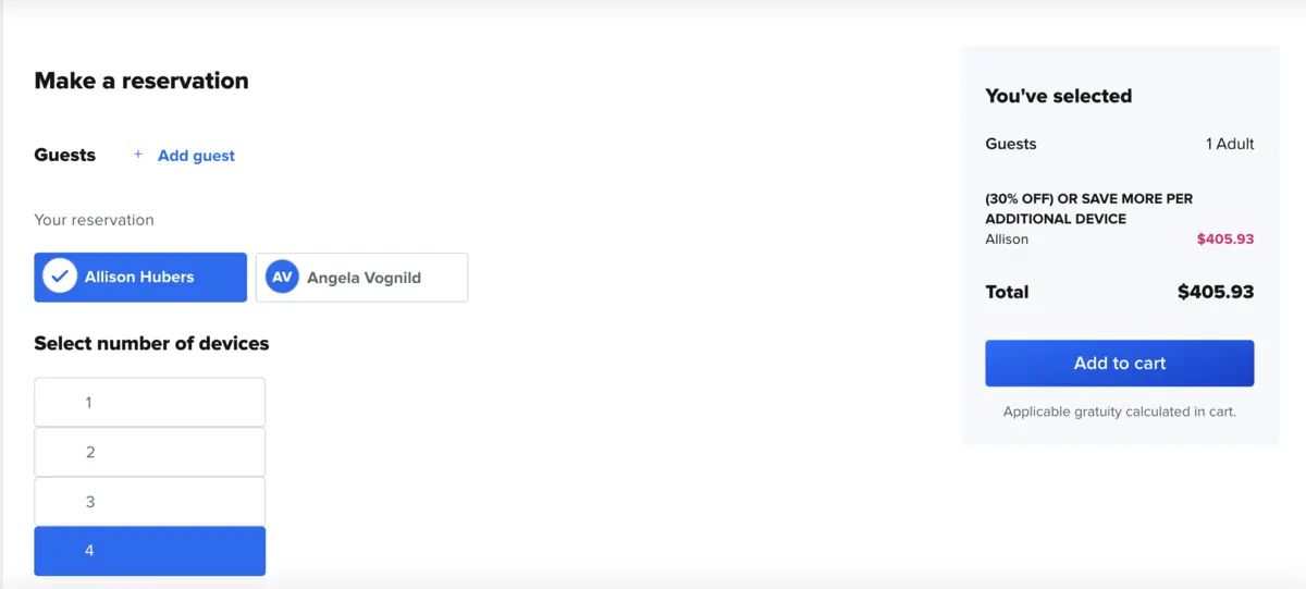 In this case, purchasing three devices for one person saves about $125 compared to each guest purchasing their own package.