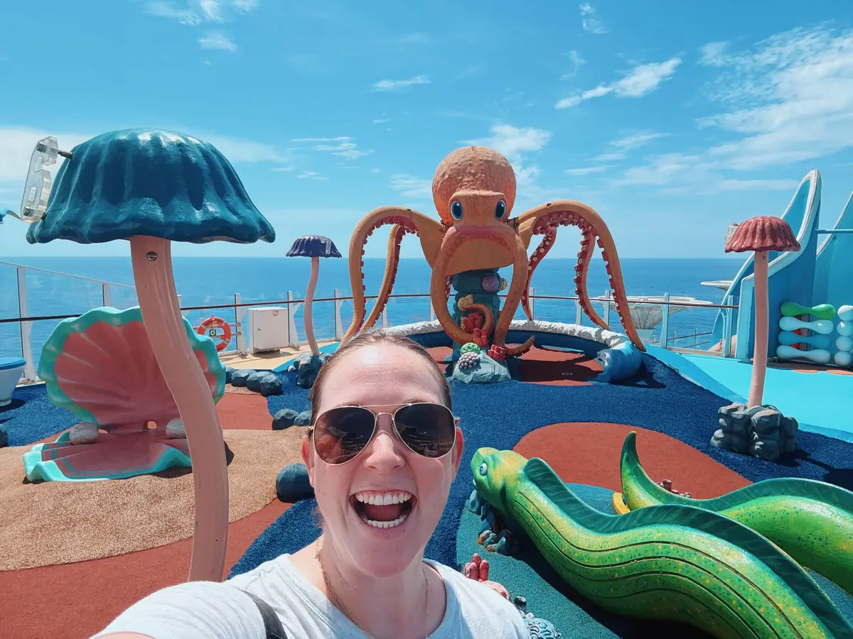 The miniature golf course is brightly colored and ocean-themed with a giant octopus, whale, and stingrays. I loved the theming, even though my miniature golf game isn’t anything to write home about.