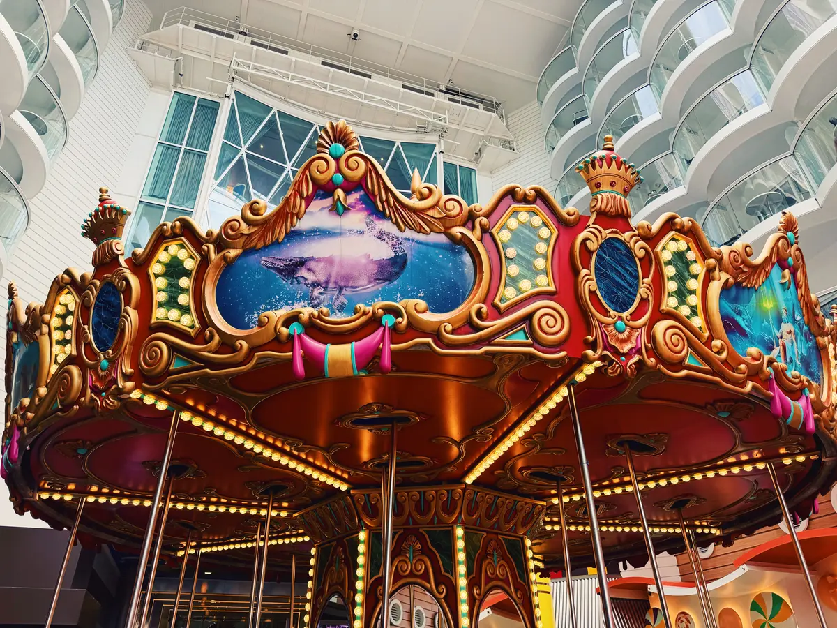 The Ultimate Abyss brings you from the ship’s top deck down to the Boardwalk on Deck 6. After the exhilarating ride, I noticed the Boardwalk’s signature carousel was offering rides. Although we didn’t have any kids with us, we asked if we could ride, and the operator said it was no issue.